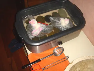 その石達は、予め50℃〜60℃のお湯の中で温められ、出番を待っています。