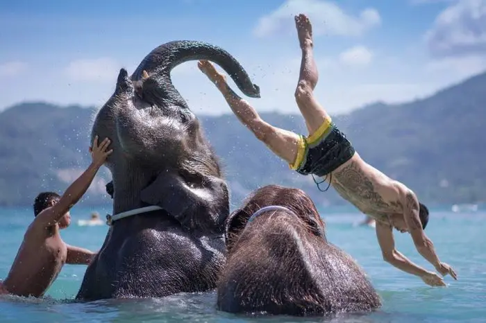 象乗り会社は、カタからカロンビューポイントへ向かう途中に位置し、美しい自然の中でゆっくりと静かに象乗りを楽しむことができます。